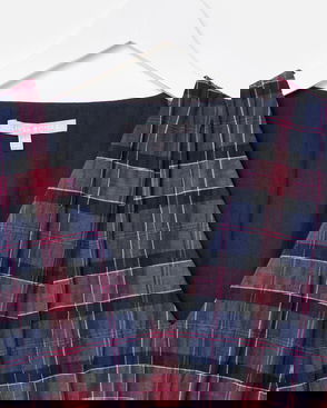 Blue & Red Checked V-Neck Puff Sleeve Midi Dress