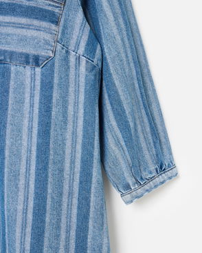 Blue Denim Striped Half Zip Mini Dress