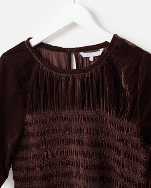 Chocolate Brown Velvet Shirred T-Shirt Mini Dress