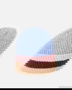 Green & Pink Striped Ribbed Knitted Beanie Hat