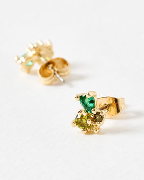 Twisted Bar Fan & Gem Gold Stud Earrings