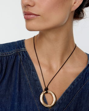 Flemming Circular Gold Tone Pendant Cord Necklace