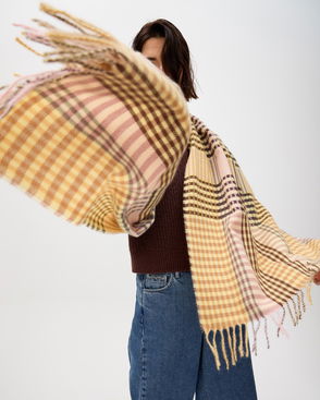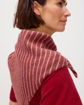 Chocolate Brown & Pink Striped Knitted Triangle Scarf