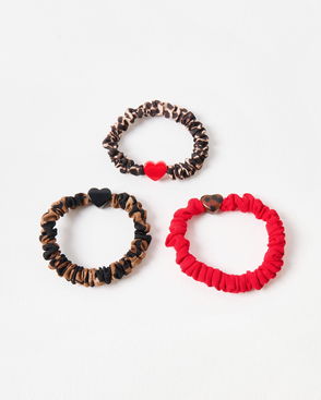 Cecily Animal Print & Red Heart Mini Scrunchies Set Of Three