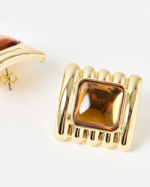 Alya Brown Resin Inlay Ribbed Square Statement Earrings