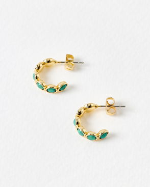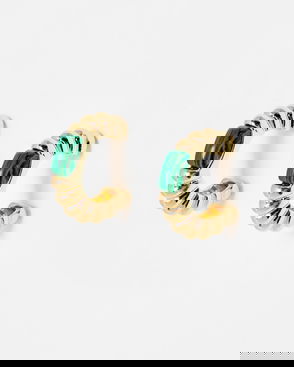 Breana Green Stone Chunky Twisted Hoop Earrings