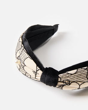 Harlow Embroidered Flower & Faux Pearl Knot Headband