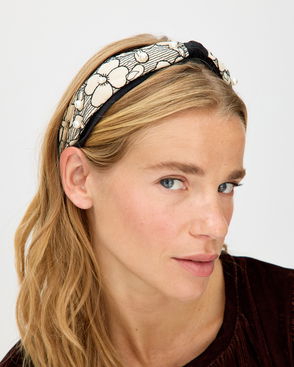 Harlow Embroidered Flower & Faux Pearl Knot Headband