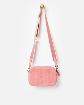 Nora Pink Corduroy Zip Front Crossbody Bag