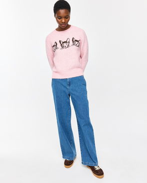 Light Pink Mimi Cat Crew Neck Knitted Jumper