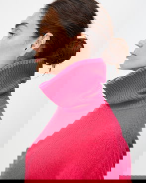 Hot Pink Loop Zip Up Collared Knitted Bomber Jacket