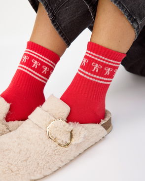Berry Red Corduroy Embroidered Sleeve V-Neck Mini Dress