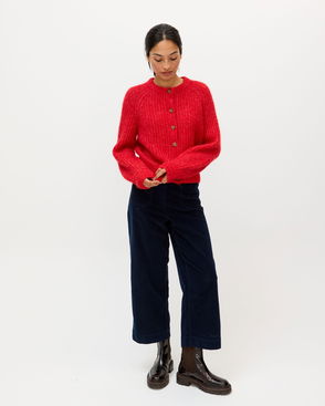 Berry Red Corduroy Embroidered Pocket Collared Jacket