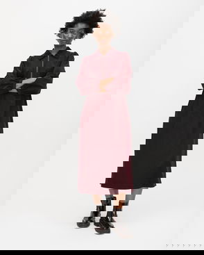 Berry Red Corduroy Embroidered Sleeve V-Neck Mini Dress