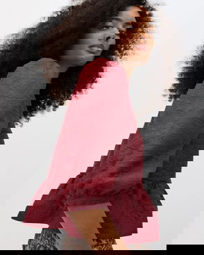 Burgundy Floral Jacquard Peplum Puff Sleeve Top