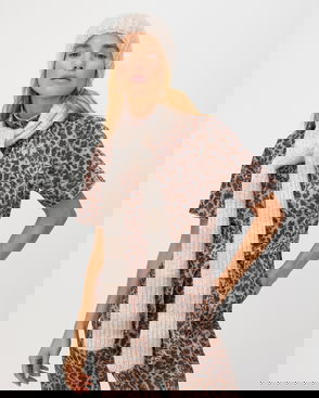 Brown Animal Print & Chequerboard Pleated Lightweight Scarf