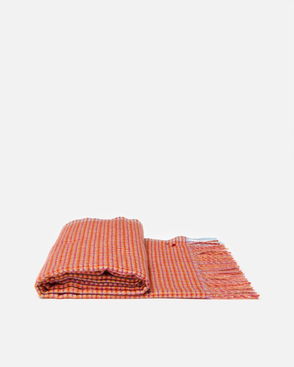 Pink & Blue Checked Cherry Motif Midweight Tassel Scarf