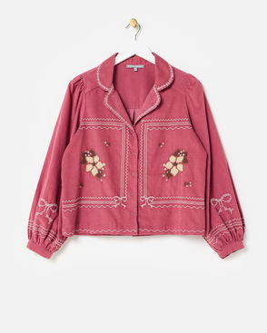 Corduroy Floral Cross Stitch Embroidered Shirt
