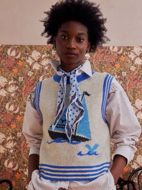 Cream & Blue Boat Knitted Tank Top