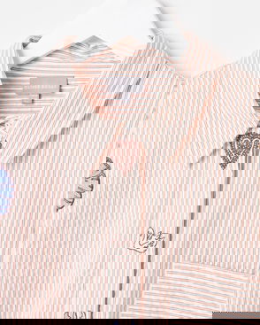 Brown & White Striped Embroidered Wide Sleeve Shirt