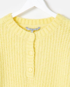 Yellow Button Detail Crew Neck Knitted Jumper