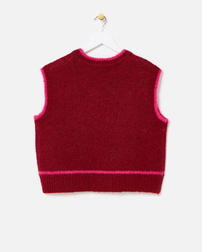 Burgundy & Cream Cat Collared Knitted Bomber Jacket