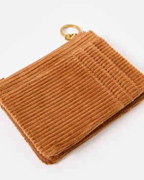 Kadie Caramel Brown Corduroy Zipped Card Holder