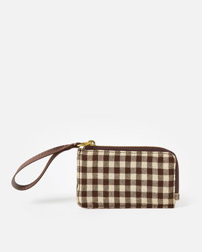 Kadie Chocolate Brown & Blue Checked Zipped Card Holder