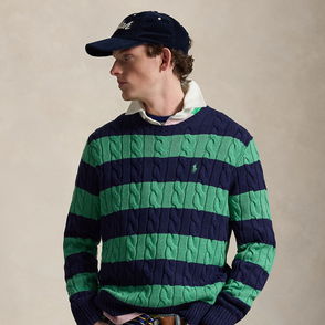 Cable-Knit Striped Cotton Jumper