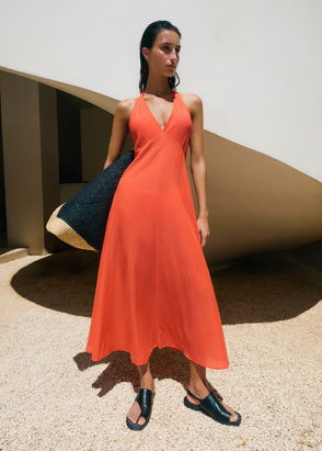 Sheer Halterneck Maxi Slip Dress Papaya Orange