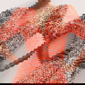 Cheesecloth Mono Paisley Print Maxi Dress Orange/Soft White