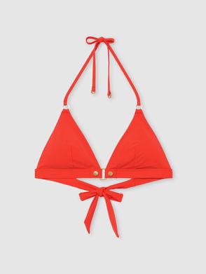 Triangle Stud-Detail Bikini Top In Coral Orange