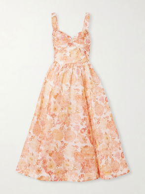 Anastasia Ruched Cotton, Linen And Silk-Blend Midi Dress