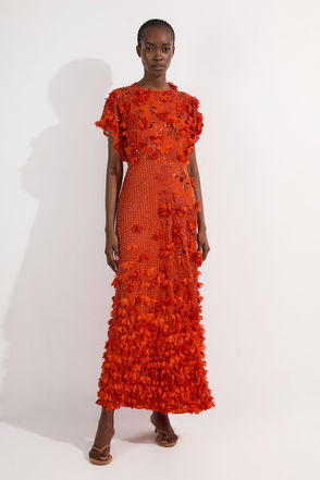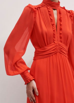 Silk Crinkle Halterneck Maxi Dress Intense Orange