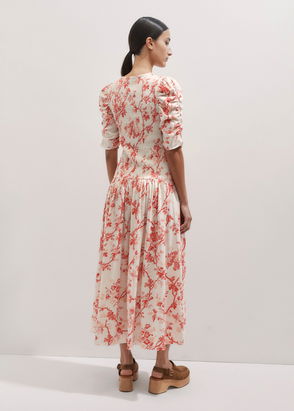 Modern Botanical Print Maxi Dress Light Cream/Intense Orange/Pumpkin Spice