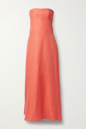 Valeria Laser-Cut Linen-Blend Midi Dress