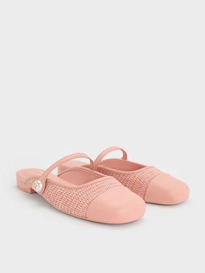 Aeryn Raffia Pearl-Embellished Slip-On Mary Janes