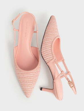 Leather Double T-Bar Leather Pumps, Cayenne Orange
