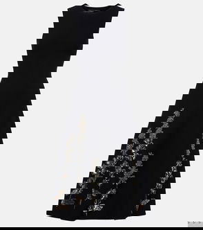 Floral-Appliqué Wool-Blend Crêpe Maxi Dress