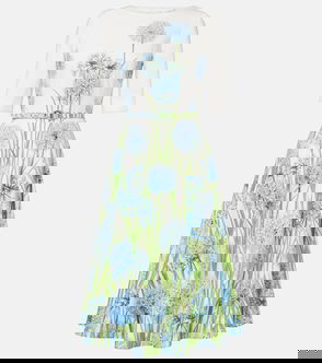 Floral Pleated Cotton-Blend Poplin Midi Dress