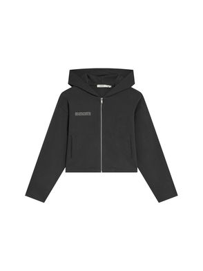 Womens Double Jersey Cropped Zip Up Hoodie—Smoked Black