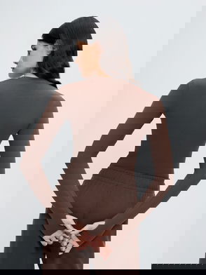 Womens Cotton-Stretch Long-Sleeved Top—Mahogany Brown