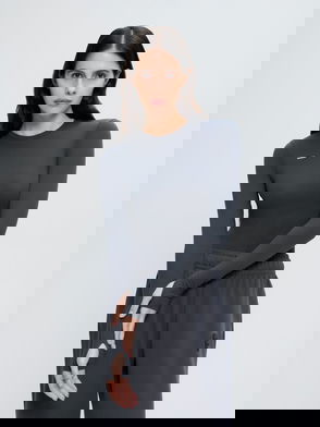 Womens Cotton-Stretch Long-Sleeved Top—Smoked Black