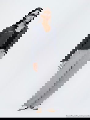 Womens Double Jersey Pleated Trousers—Grey Marl