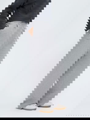Womens Double Jersey Pleated Trousers—Grey Marl