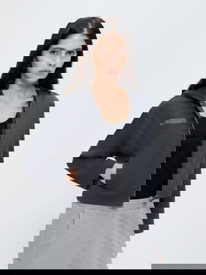 Womens Double Jersey Cropped Zip Up Hoodie—Smoked Black