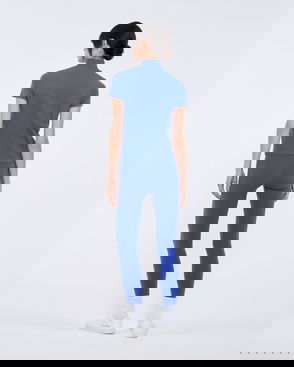 Womens 99% Bio-Based Zipped Short Sleeve Top—Gaia Blue