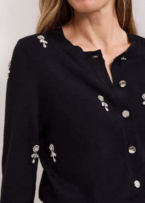 Robin Embellished Cardigan Containing LENZING™ ECOVERO™ Viscose, Black