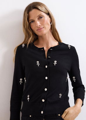 Robin Embellished Cardigan Containing LENZING™ ECOVERO™ Viscose, Black