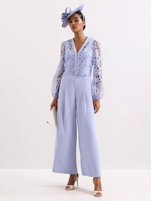 Petite Winona Lace Top Jumpsuit, Pale Blue